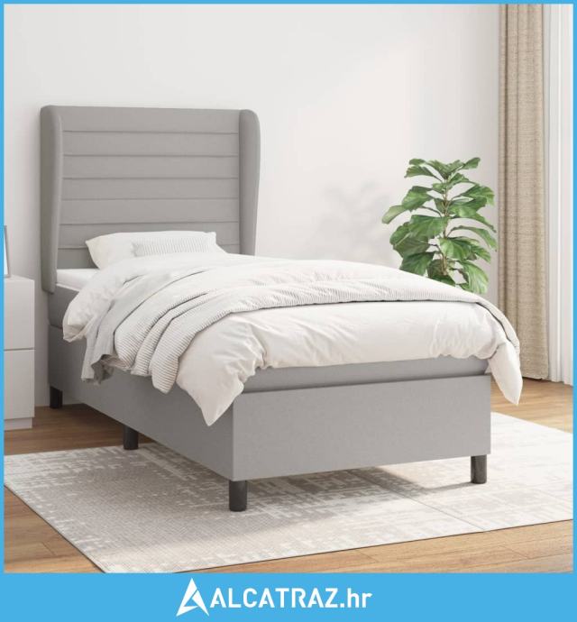 Box spring krevet s madracem svjetlosivi 90x190 cm od tkanine - NOVO
