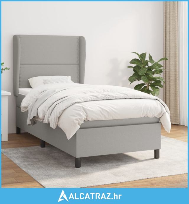 Box spring krevet s madracem svjetlosivi 90x190 cm od tkanine - NOVO