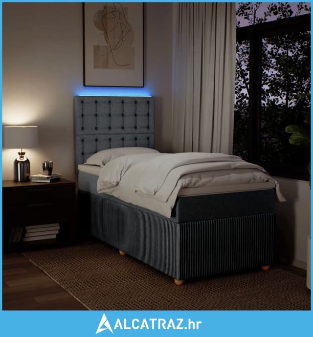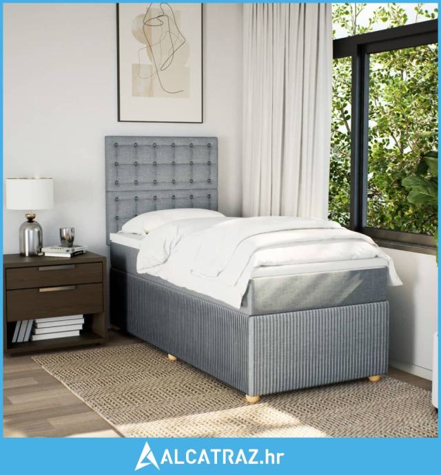 Box spring krevet s madracem svjetlosivi 90x190 cm od tkanine - NOVO