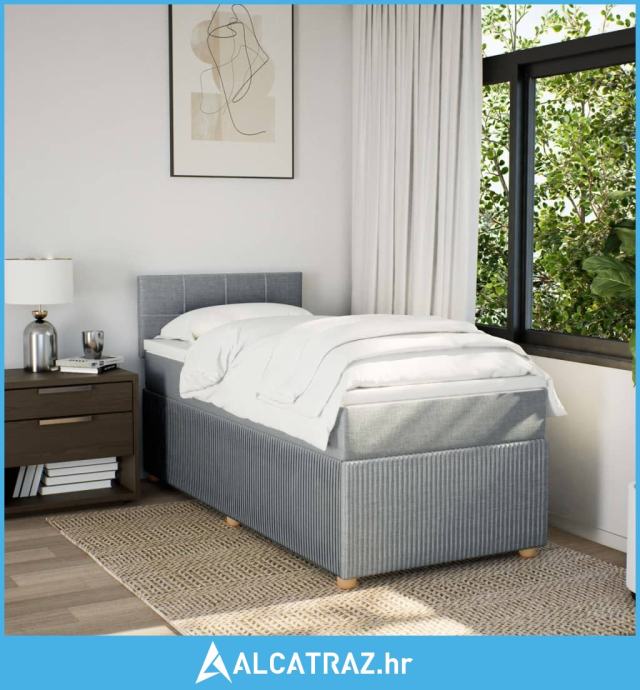 Box spring krevet s madracem svjetlosivi 90x190 cm od tkanine - NOVO