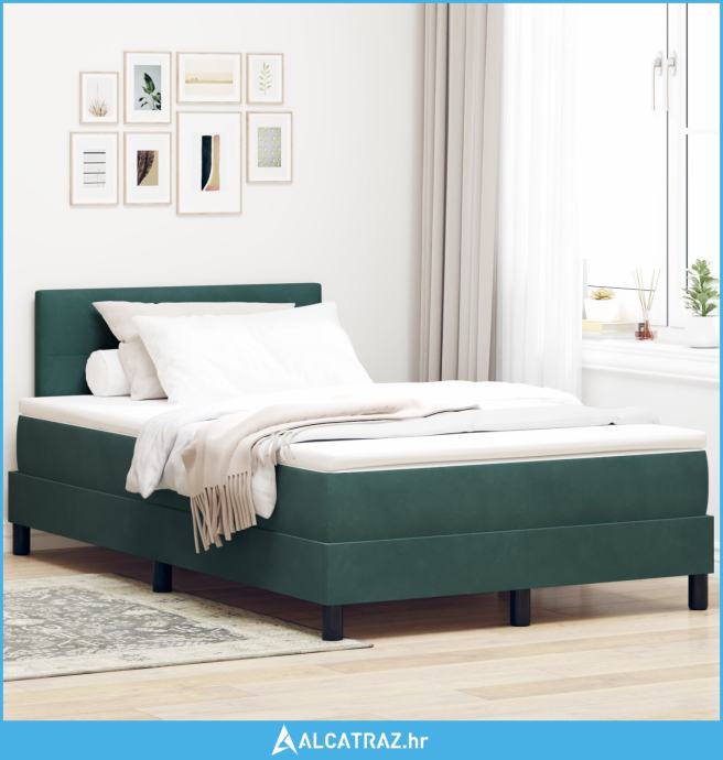Box Spring Krevet s Madracem Tamno Zeleno 120x200 cm Baršun - NOVO