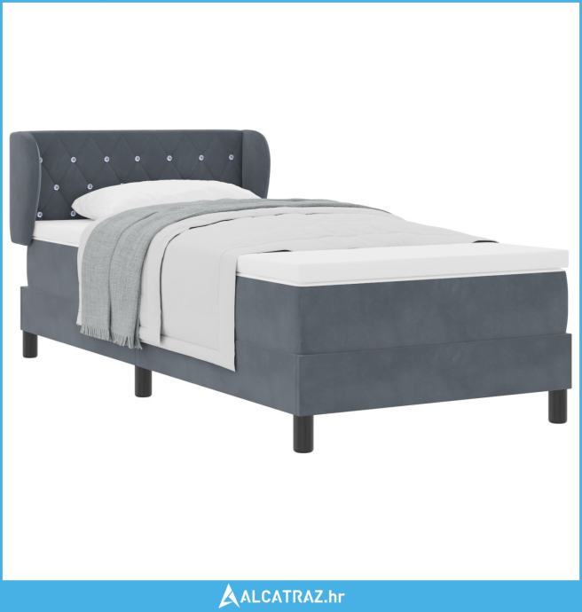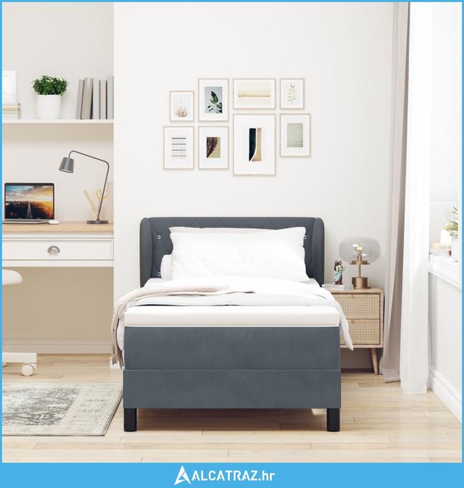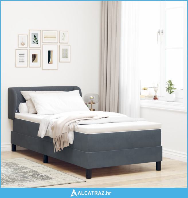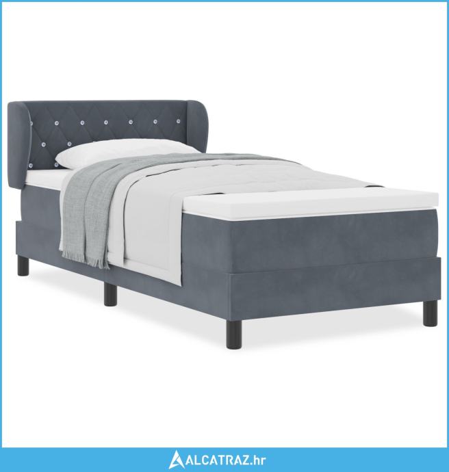 Box Spring Krevet s Madracem u Tamnoj Sivoj, 100x200 cm, Baršun - NOVO