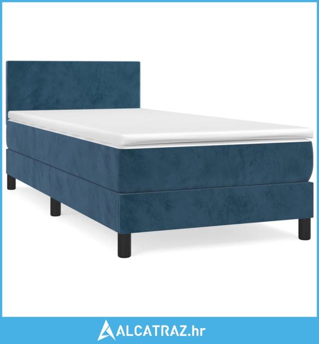 Box spring krevet s madracem tamnoplavi 100x200 cm baršunasti - NOVO