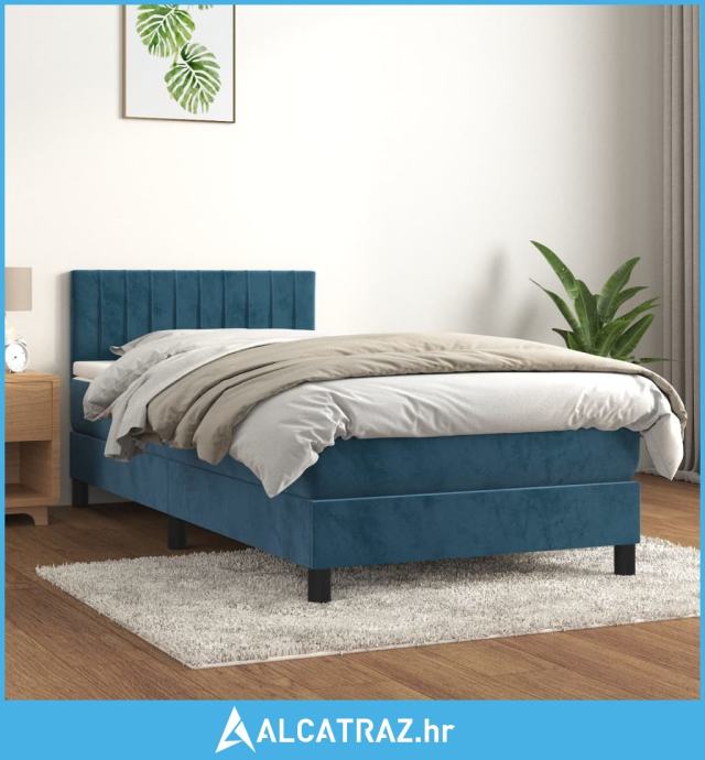 Box spring krevet s madracem tamnoplavi 100x200 cm baršunasti - NOVO