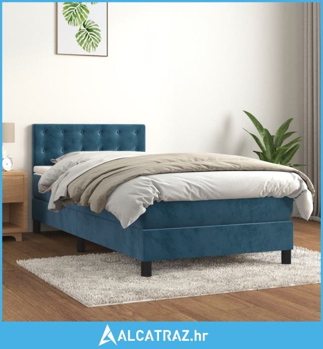 Box spring krevet s madracem tamnoplavi 100x200 cm baršunasti - NOVO