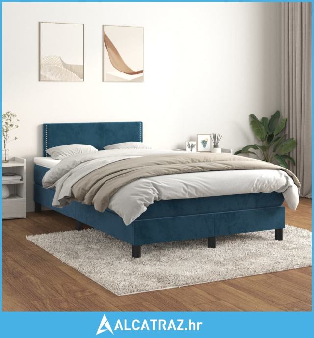 Box spring krevet s madracem tamnoplavi 120 x 200 cm baršunasti - NOVO