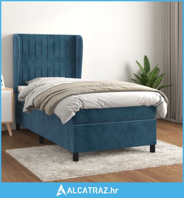 Box spring krevet s madracem tamnoplavi 80 x 200 cm baršunasti - NOVO