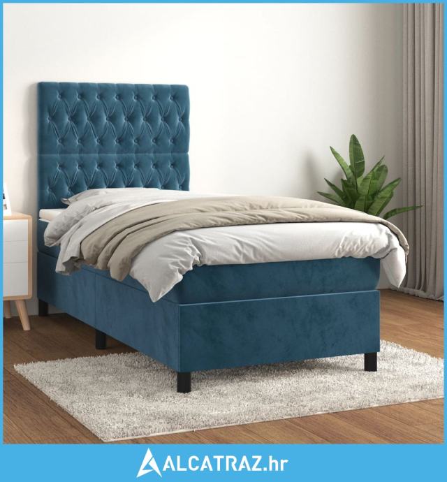 Box spring krevet s madracem tamnoplavi 80 x 200 cm baršunasti - NOVO