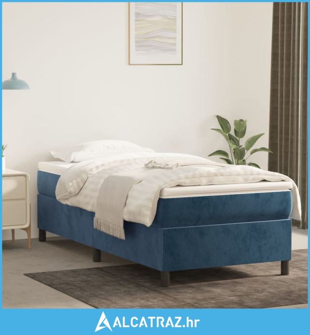 Box spring krevet s madracem tamnoplavi 90x190 cm baršunasti - NOVO