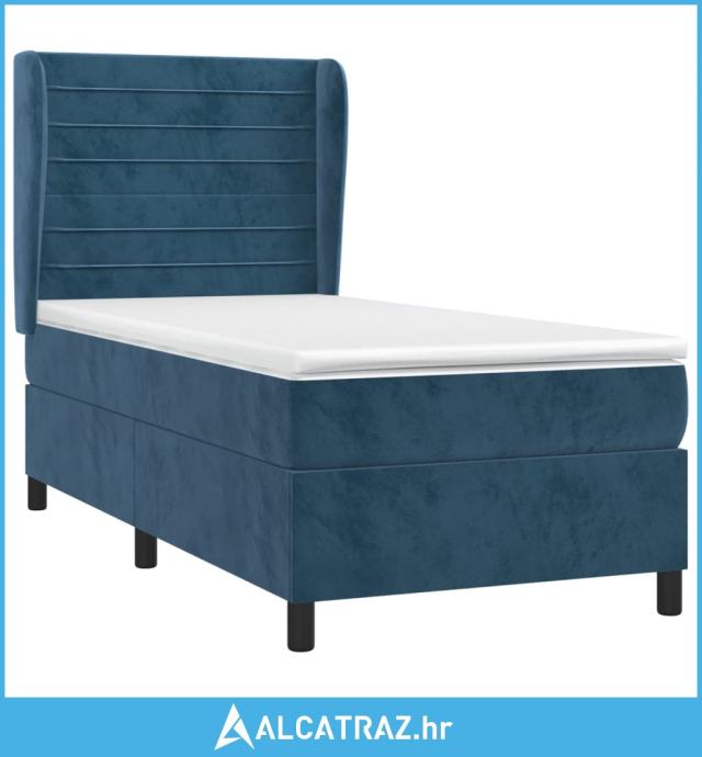 Box spring krevet s madracem tamnoplavi 90x200 cm baršunasti - NOVO