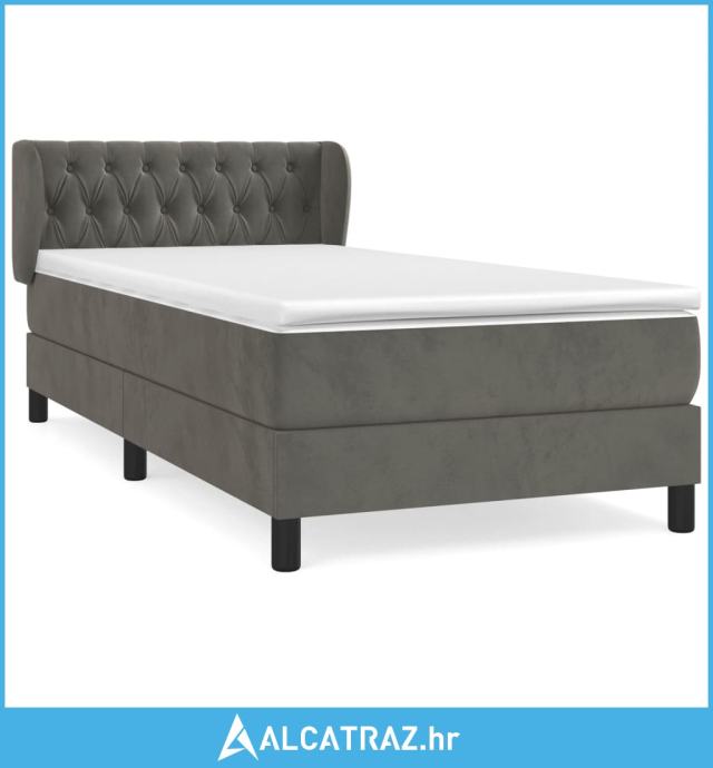 Box spring krevet s madracem tamnosivi 100x200 cm baršunasti - NOVO