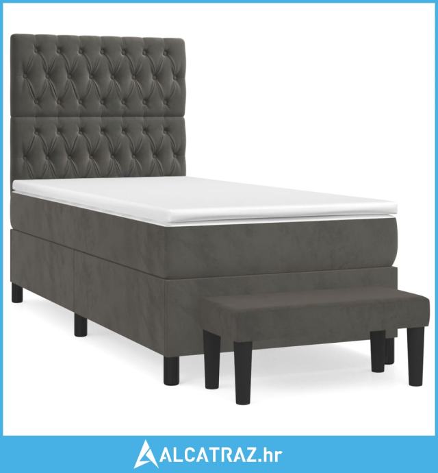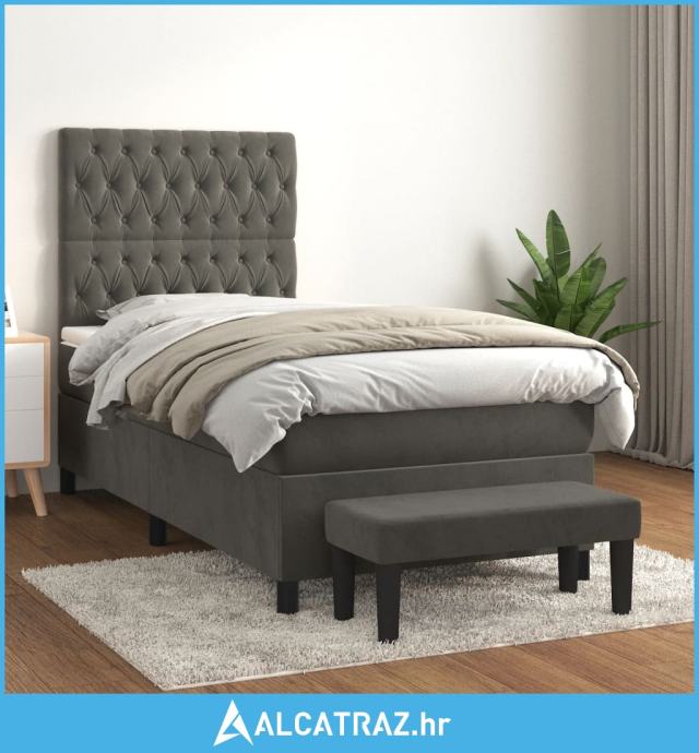 Box spring krevet s madracem tamnosivi 100x200 cm baršunasti - NOVO