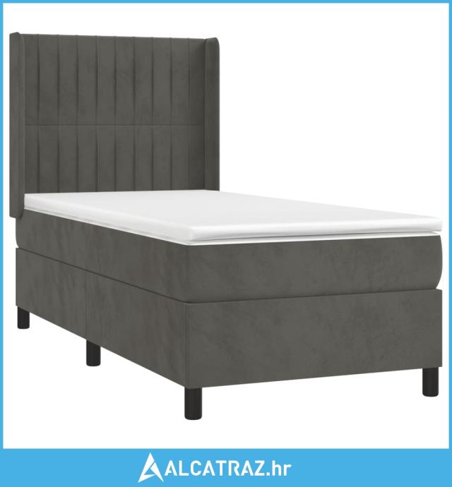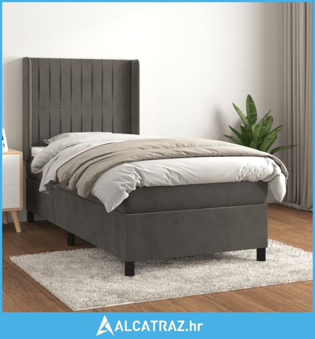 Box spring krevet s madracem tamnosivi 100x200 cm baršunasti - NOVO