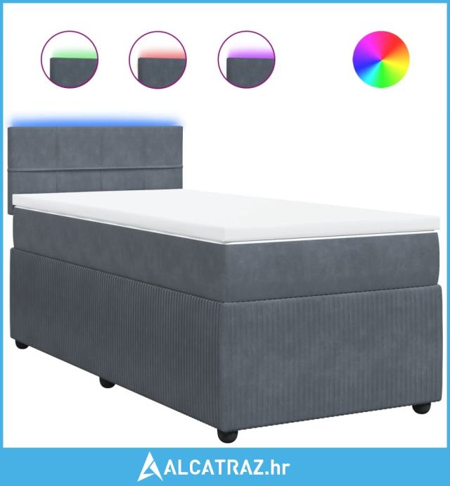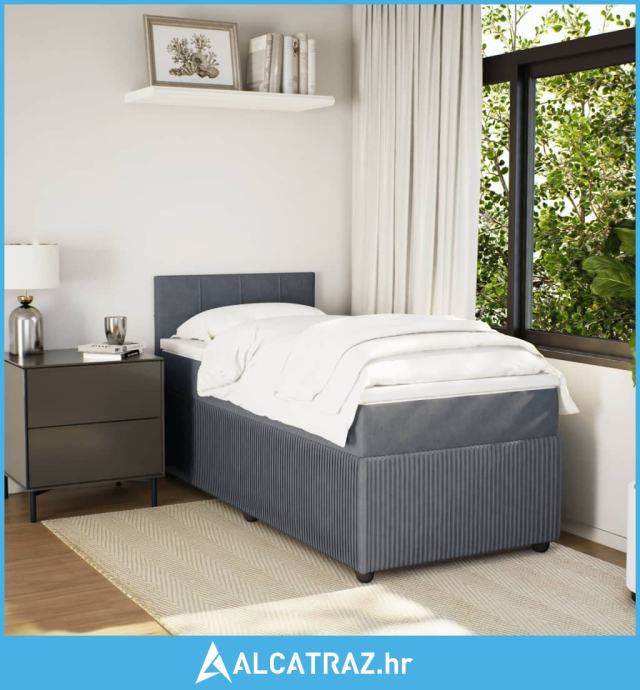 Box spring krevet s madracem tamnosivi 100x200 cm baršunasti - NOVO