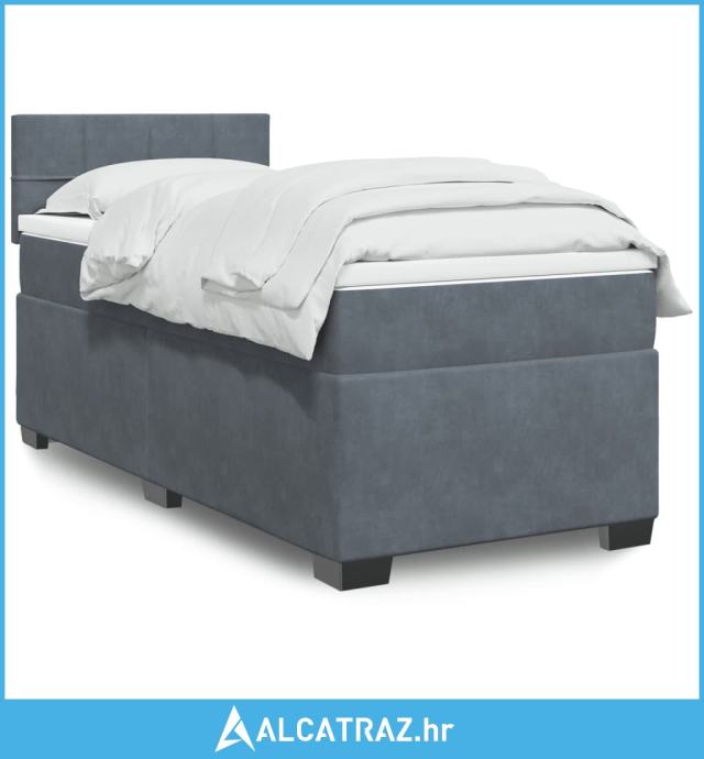 Box spring krevet s madracem tamnosivi 100x200 cm baršunasti - NOVO