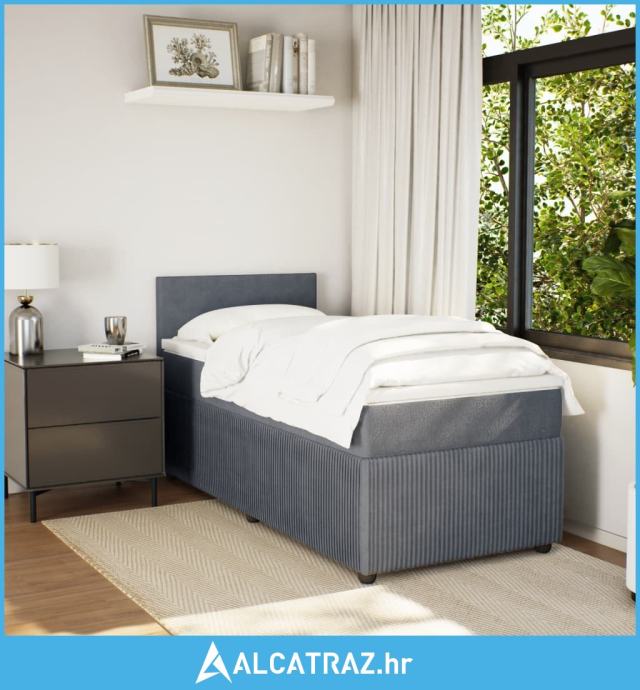 Box spring krevet s madracem tamnosivi 100x200 cm baršunasti - NOVO
