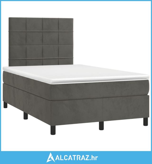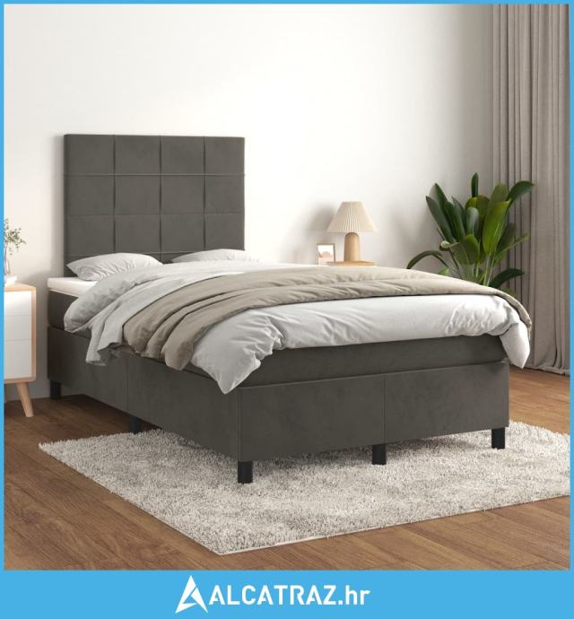 Box spring krevet s madracem tamnosivi 120 x 200 cm baršunasti - NOVO
