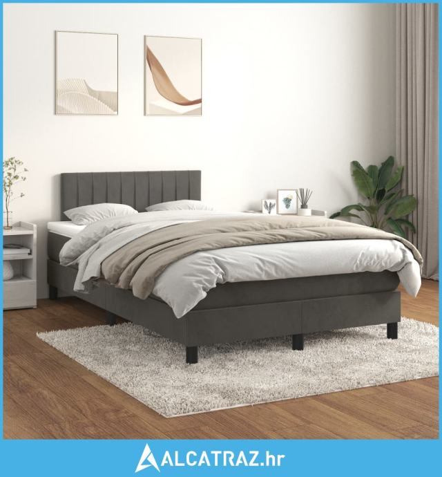 Box spring krevet s madracem tamnosivi 120 x 200 cm baršunasti - NOVO