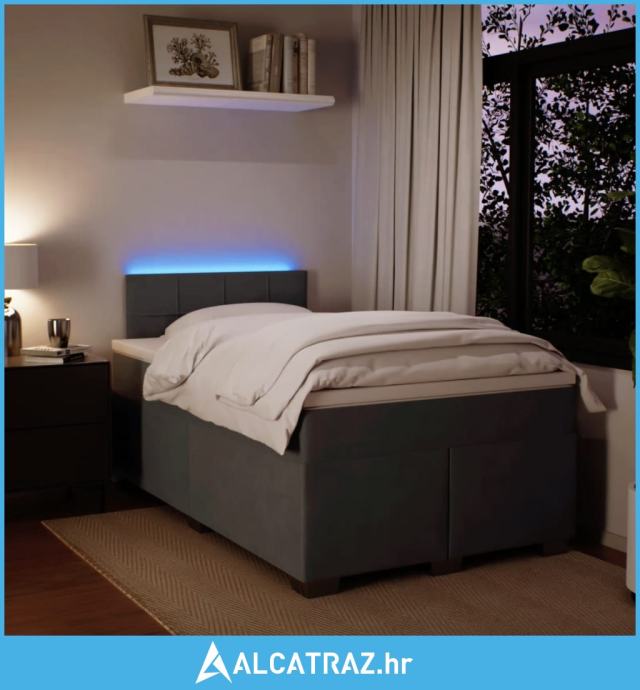 Box spring krevet s madracem tamnosivi 120 x 200 cm baršunasti - NOVO
