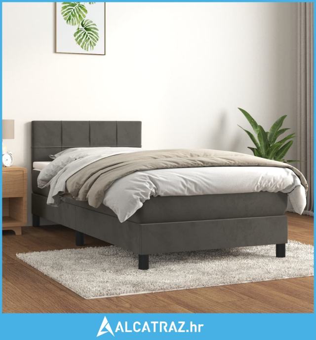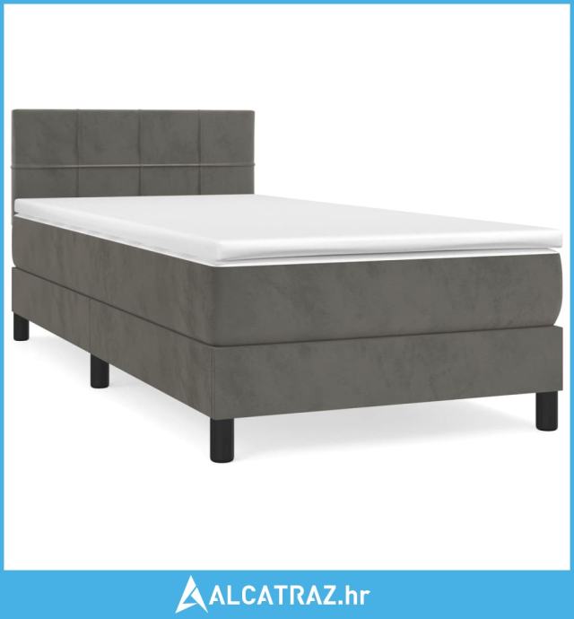 Box spring krevet s madracem tamnosivi 80 x 200 cm baršunasti - NOVO