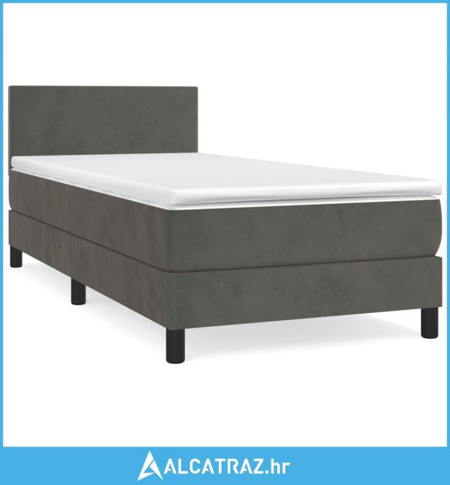 Box spring krevet s madracem tamnosivi 80 x 200 cm baršunasti - NOVO