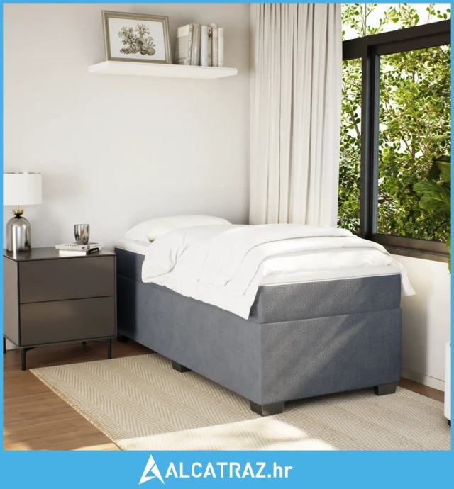 Box spring krevet s madracem tamnosivi 80 x 200 cm baršunasti - NOVO