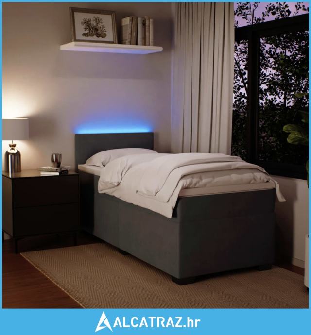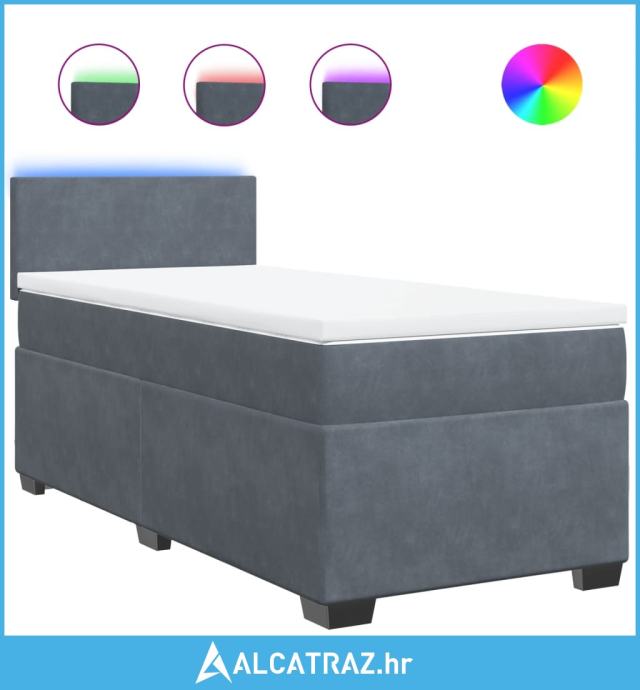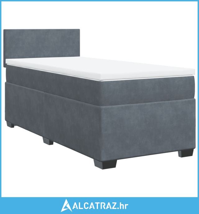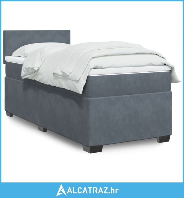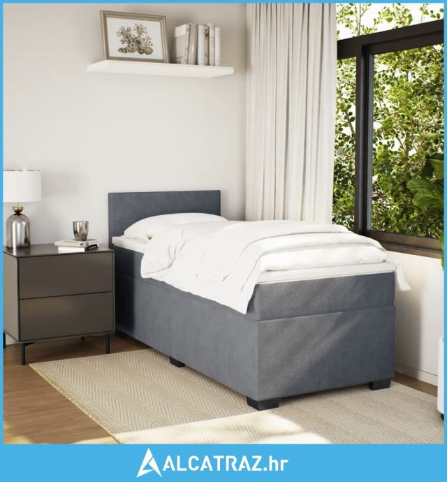 Box spring krevet s madracem tamnosivi 80 x 200 cm baršunasti - NOVO