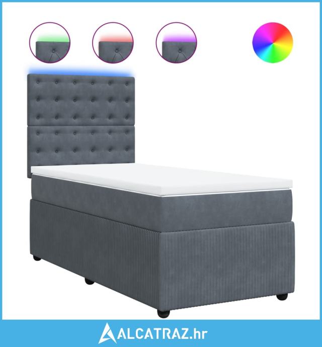 Box spring krevet s madracem tamnosivi 80 x 200 cm baršunasti - NOVO
