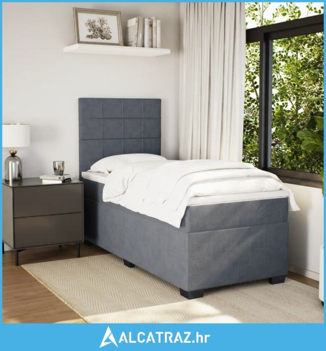 Box spring krevet s madracem tamnosivi 80 x 200 cm baršunasti - NOVO