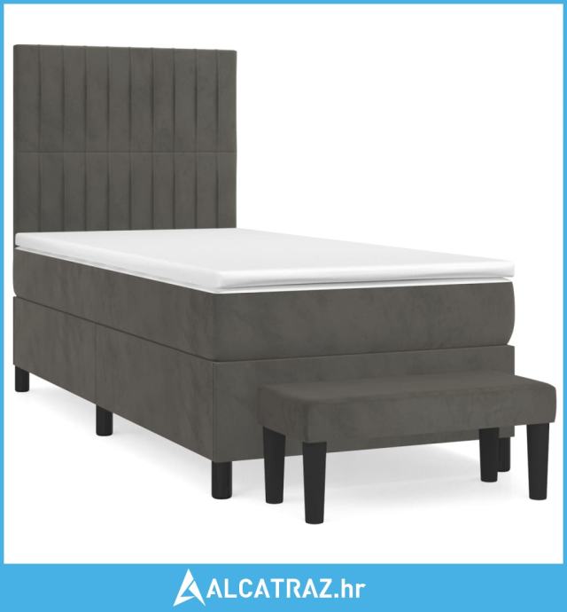 Box spring krevet s madracem tamnosivi 90x190 cm baršunasti - NOVO