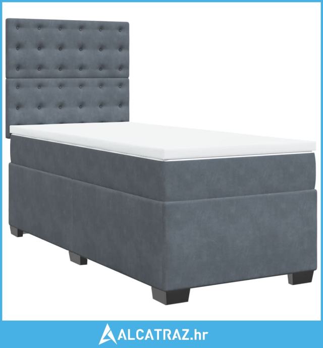 Box spring krevet s madracem tamnosivi 90x190 cm baršunasti - NOVO