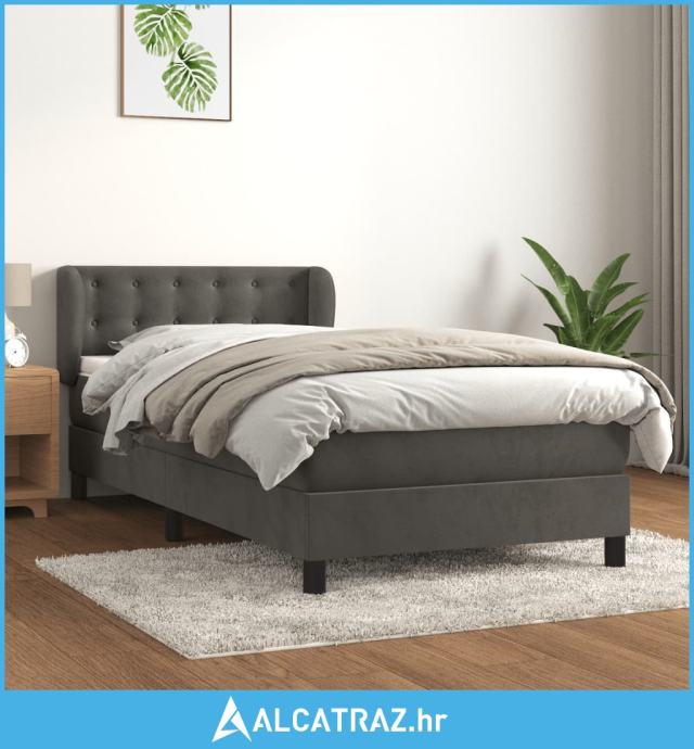 Box spring krevet s madracem tamnosivi 90x200 cm baršunasti - NOVO