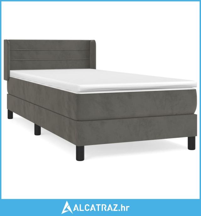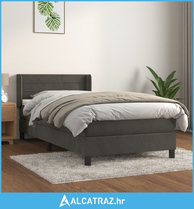 Box spring krevet s madracem tamnosivi 90x200 cm baršunasti - NOVO