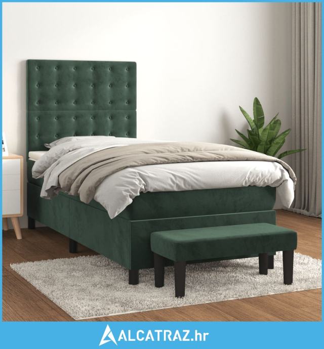 Box spring krevet s madracem tamnozeleni 80 x 200 cm baršunasti - NOVO