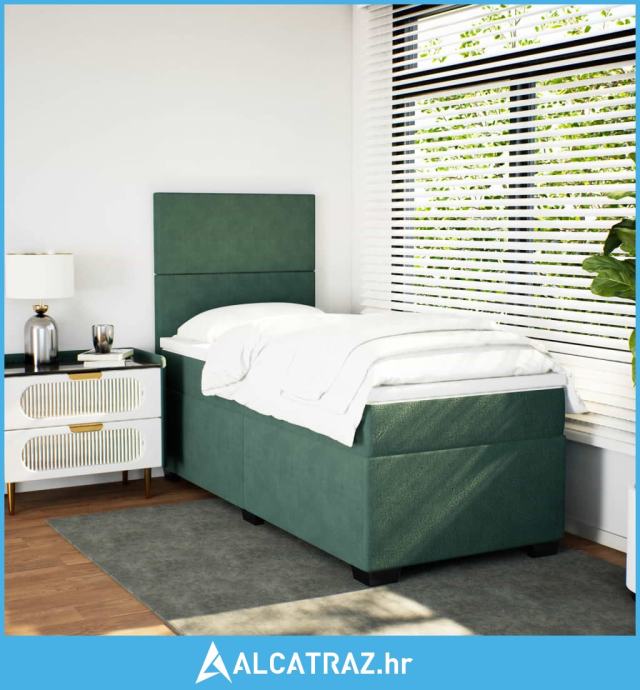 Box spring krevet s madracem tamnozeleni 90x200 cm baršunasti - NOVO