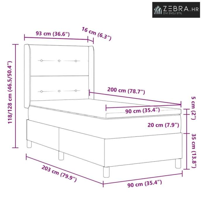 Kompatibilna veličina madraca: Jednostruki (90 cm x 200 cm /