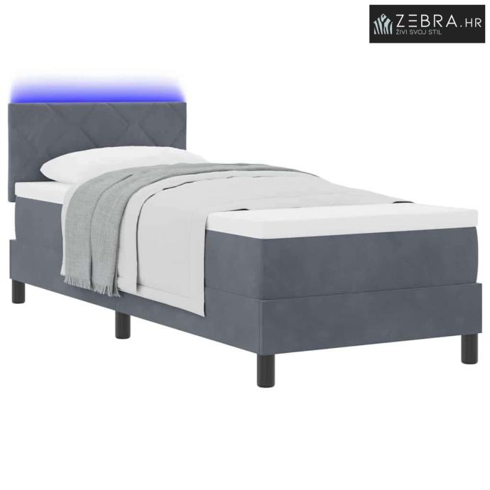 LED Box Spring Krevet s madracem Tamno siva 80 x 200 cm Baršun