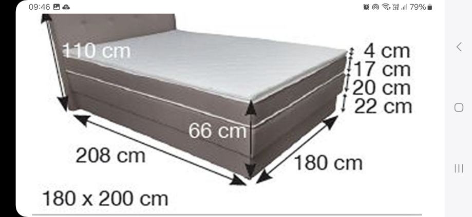 Novi u original pakiranju boxspring krevet s kutijom za posteljinu dubine 22 cm. Na kutiju dolazi ušiven madrac s đepicastim punjenjem visine 20 cm, te na njega madrac koji se moze mijenjati s đepicastim punjenjem visine 17 cm. Na to sve dolazi nadmadrac od Pu pjene visine 4 cm. Ukupna visina spavanja je cca 63 cm. Visina uzglavlja 110 cm. Otvaranje kutije za posteljinu na uznožju. Nogice su visine 5 cm. Boja siva kao na slici.Vanjske dimenzije kreveta 145x208x121. Na skladištu dostupan odmah u dimenziji 140x200. Vise modela kreveta se mogu pogledati u našem izložbenom prostoru u Dubravi uz prethodni dogovor. Molim zvati na 091/1975-711 ili pišite na info@internoconcept.hr.