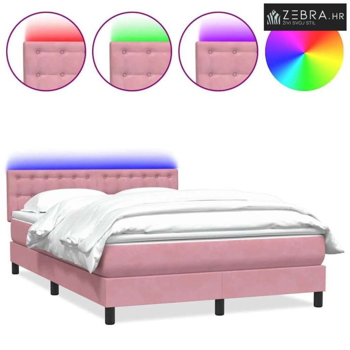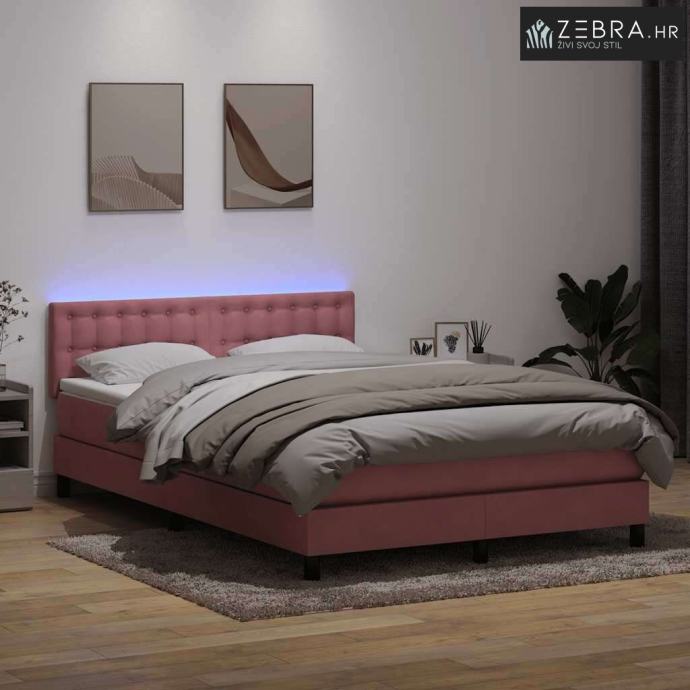 Boxspring - Krevet s oprugama i madracem LED ružičasti 160x210 cm barš