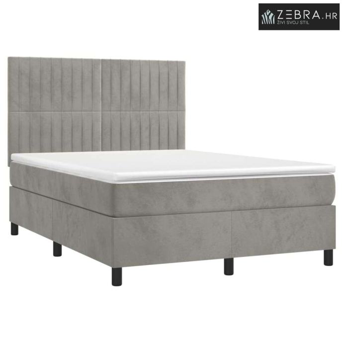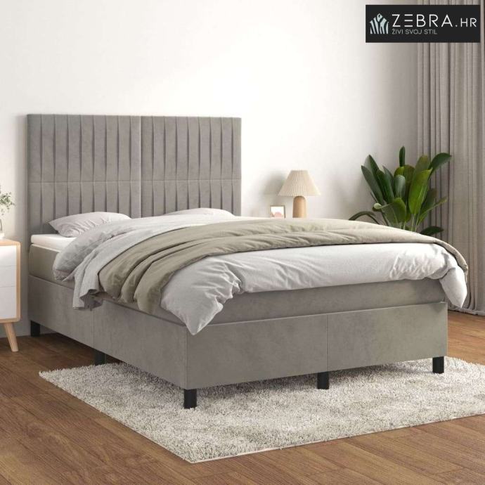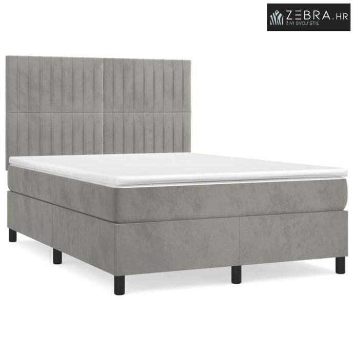 Boxspring - Krevet s oprugama i madracem svjetlosivi 140x190 cm baršun