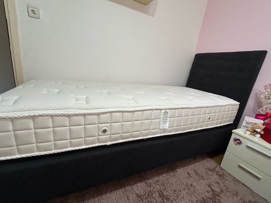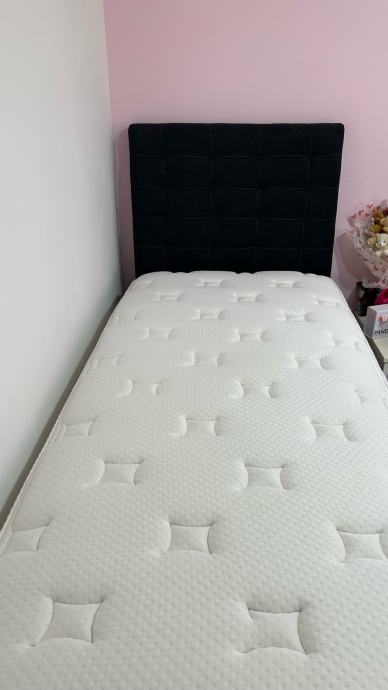Prodajem krevet boxspring 80/200 cm malo korišten(kao novi).U cijenu je uključeno madrac i podnica.Madrac visine cca 27 cm.Uzglavlje je plavo-sive boje,vrsta uzglavlja tapecirani.Ukupna visina uzglavlja je 117 cm.Visina ležaja je cca 67 cm.