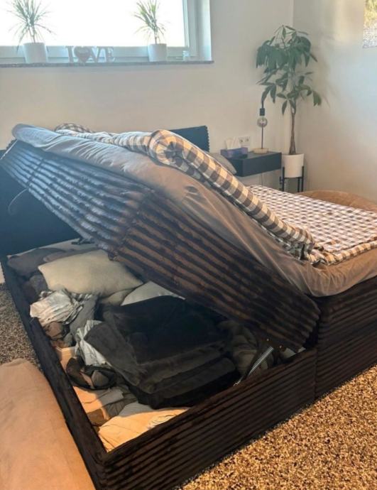 Boxspringbett s ladicama, kao nov (korišten manje od godine dana), plišani materijal. Uvoz iz Njemačke, dimenzije: 180x200.