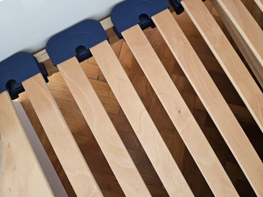 Ormar bijeli visoki sjaj ,police i šipka za vješalice, klizna vrata Š160, V210,dubina 57.Noćni ormarići 2 kom.:44 dubina,Š 55cm,visina 44cm.Podnice Hespo 2×90×200 sa prilagodljivom potporom.Materijal je visoki sjaj pa se lako održava.Prodajem sve u kompletu.