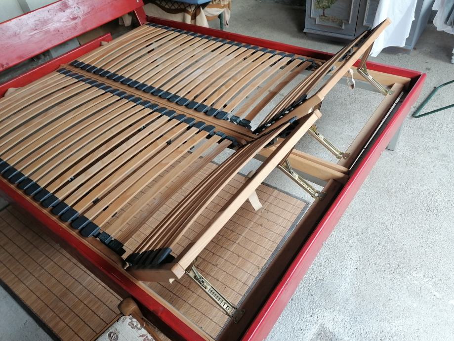 Ručni rad, čelični okvir, drvene stranice, podnice kvalitetne njemačke, kao latoflex. Može i prodaja madraca rabljenog cca 2 god. Sve uredno čitavo i čisto.