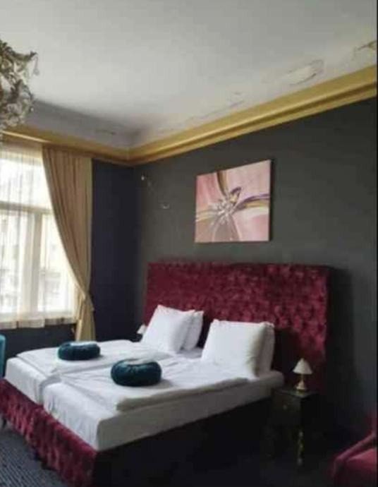 Hotelski namjestaj . Krevet 180 x200 , 2 kreveta 100x 200 s mogucnoscu spajanja u jedan veliki, 2 uzglavlja 170x 285. Sve je radjeno po mjeri od punog drveta. Tapecirano od finog baršuna boje trule višnje. Korišteno vrlo kratko, kao novo, bez ostecenja. Vrlo povoljno. Moguce pogledati prije kupnje. Cijena po dogovoru.