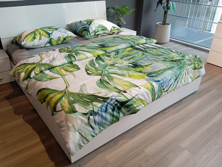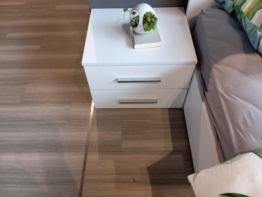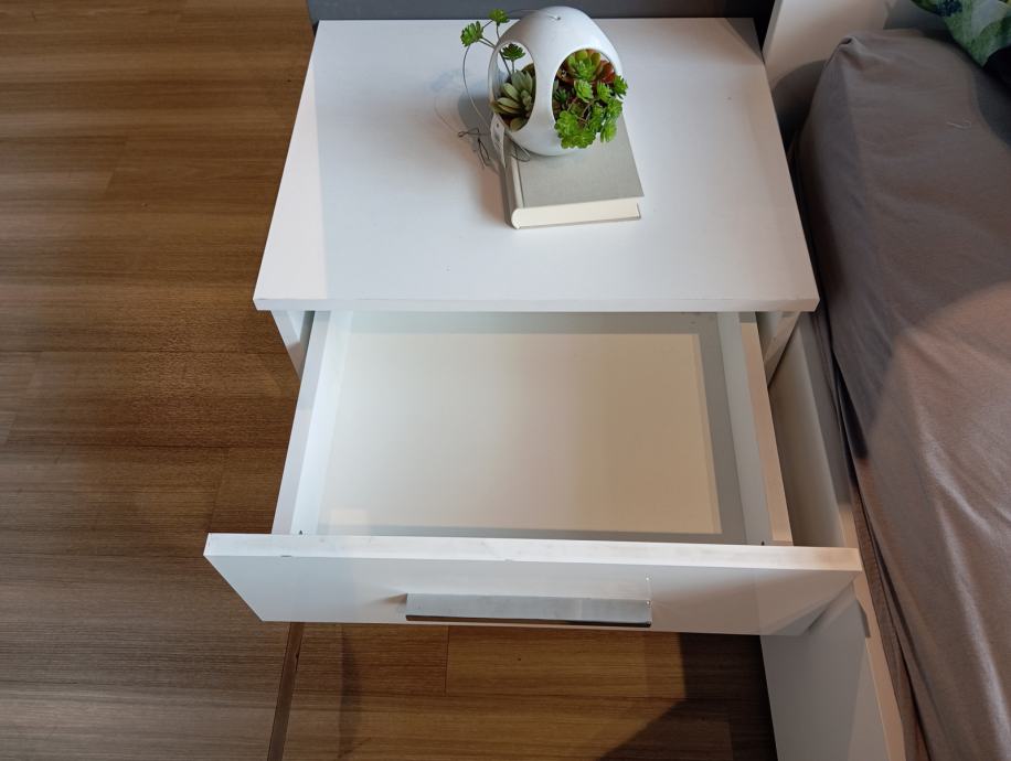 Prodaje se neotpakirani bračni krevet dimenzija 180x200 bez madraca s pripadajućim noćnim ormarićima