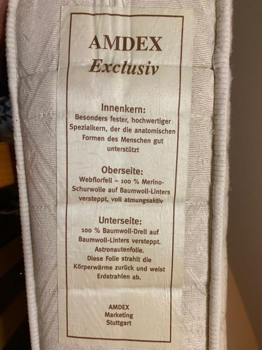 •uz krevet je također moguće uzeti i set od 2 anatomska madraca odgovarajućih za ovaj krevet; madraci su debljine 17cm, tvrđe kakvoće i imaju 2 strane (za potrebe slikanja je jedan okrenut na “zimsku”, a drugi na “ljetnu” stranu) i obloženi su 100% pamukom sa ljetne, tj. 100% vunom sa zimske strane (za detaljniji sastav pogledati sliku)