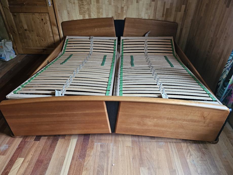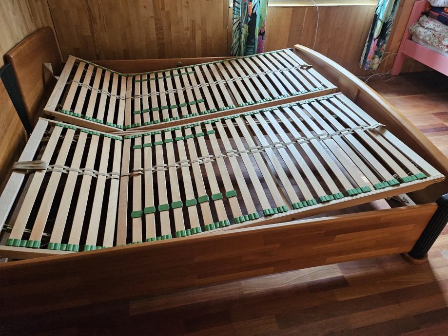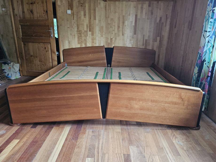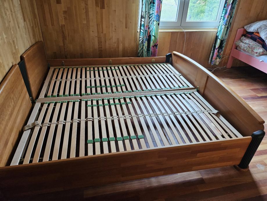 Krevet nije serijska proizvodnja.ekstra dizajniran.i kod stolara.uradjen.cijeli krevet je od masivnog drveta trešnja.jako stabilan.sa orginal latofleks.podnicama.