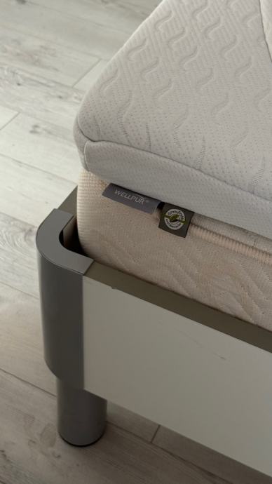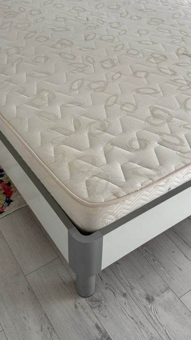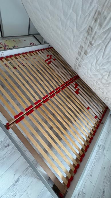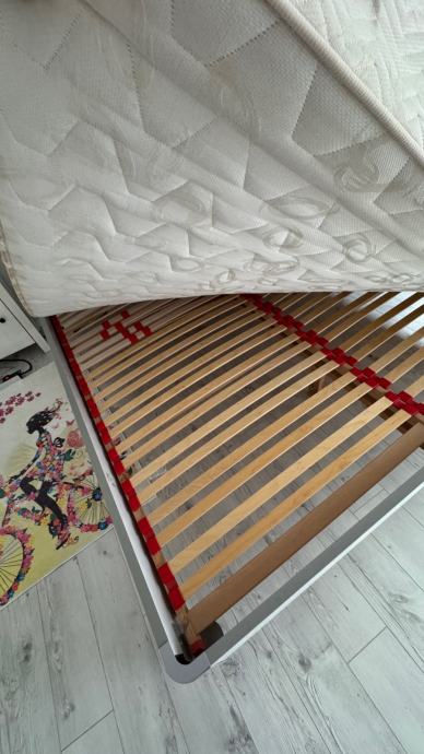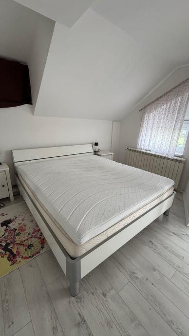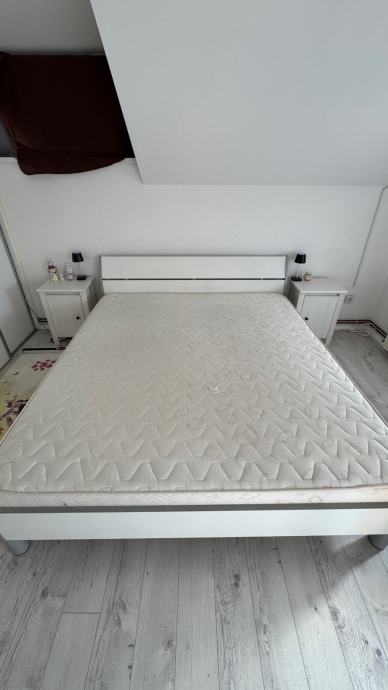 Čvrst krevet sa podesivim podnicama, 20cm pjenasti madrac, 8cm nadmadrac. Samo nadmadrac je placen 250€ prije 3mj.