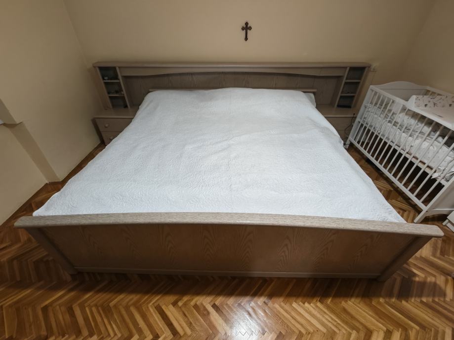 Bračni krevet dimenzije 214 x 207 cm, sa pripadajućim ormarićima, lato